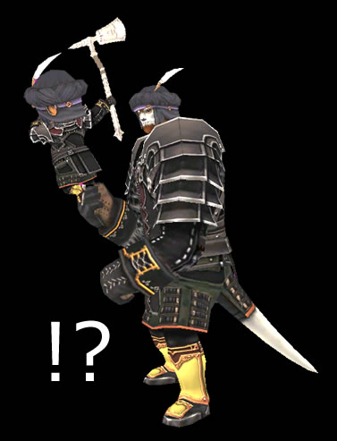 じゃあ実際にタルサイズの両手斧をガルカが持つとどうなるのか。