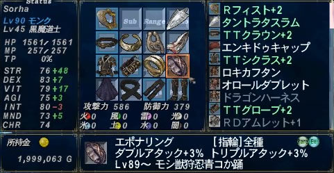 モンクがフルAF3+2になり、黒帯も合わせてヘイストはキャップ到達。