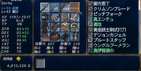 忍者、モンク、侍と3ジョブ分の脚AF3が+2になりました。