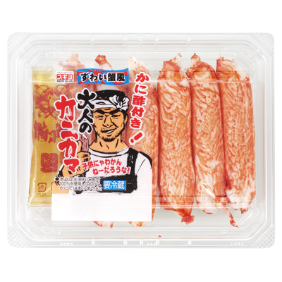 近所のスーパーで売ってる、非常にインパクトのある謎のカニカマ。