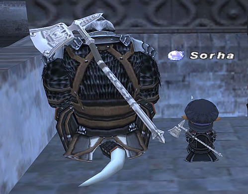 じゃあ実際にタルサイズの両手斧をガルカが持つとどうなるのか。