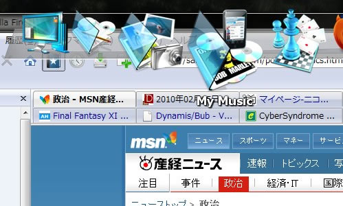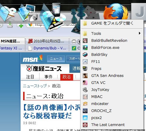 で、今日の本題は汚いデスクトップでもガジェットでも無く↑側に出てるバーとアイコン。