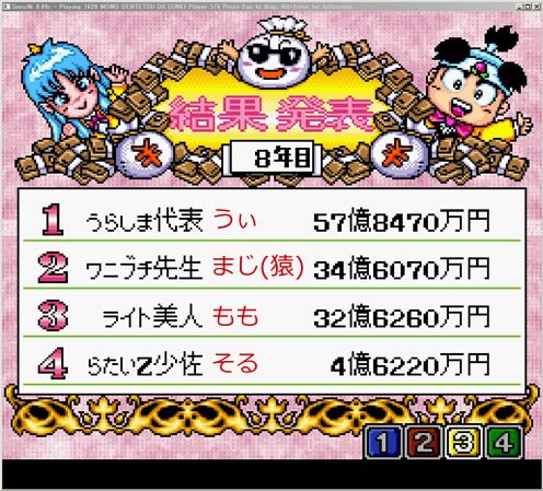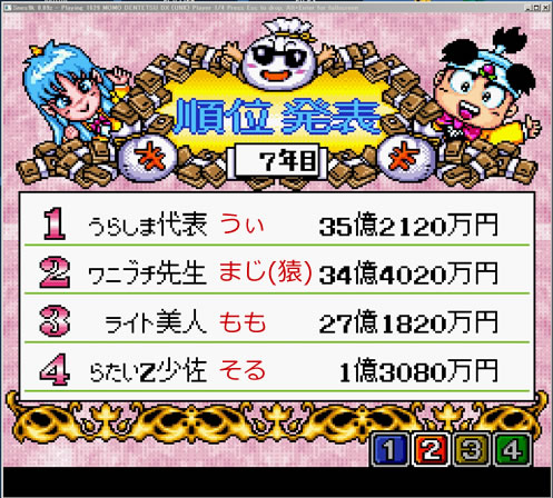 もも…順調に稼げてたものの、猿の妨害をモロに浴びる。結果、僅差で3位に。