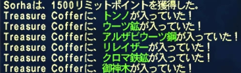 過去バタリアの戦績NMにて、当たり素材4つという奇跡を目の当たりに。