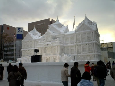 暖冬のせいか、雪像がちょっと溶けてました。