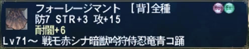 プリズムケープにオーグメント(耐闇+15 飛命+2)がついてしまってるので、