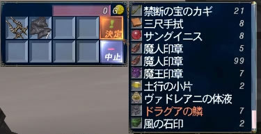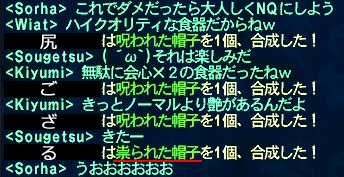 素材も安くなったので、尻さんの2垢に呪物の合成をしらもらったところ