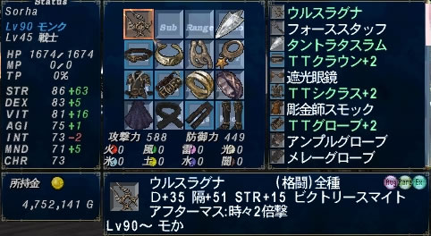 どうにかウルスラグナの装備レベルが90になりました。