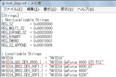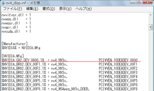 Vistaの場合、[NVIDIA.Mfg.NTx86.6.0]という文を探し、その下に